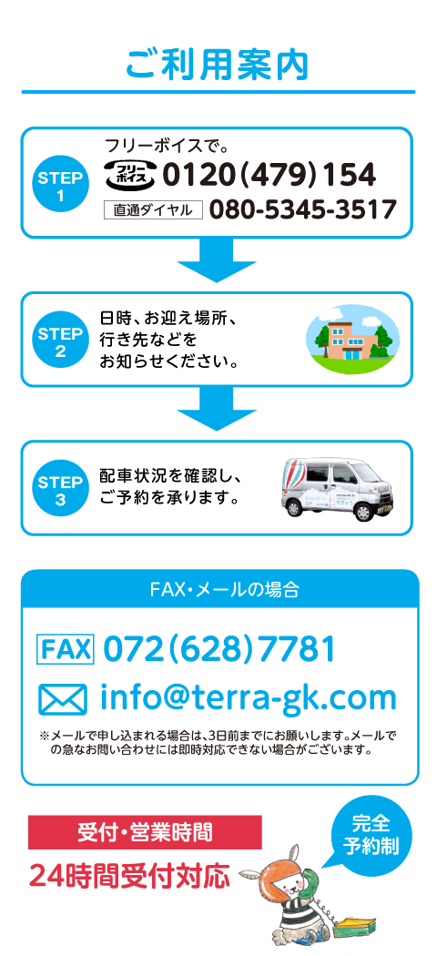 介護福祉タクシー ききゅうの活動地域は大阪府高槻市、茨木市、吹田市、摂津市、箕面市、三島郡島本町が中心ですが、その他地域も対応可能です。